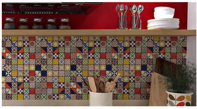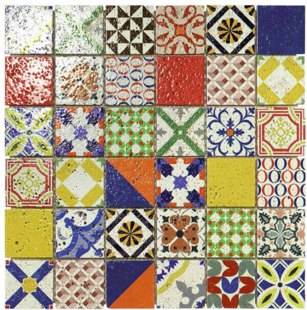 Serie Portugal . Marmermozaïek, travertin met opgedrukte motieven, afwerking blinkend. Artikel met een grote elegatie en past in elke omgeveing. Het trekt de aandacht en gaat in harmonie met elke stijl van meubelen en vloeren.