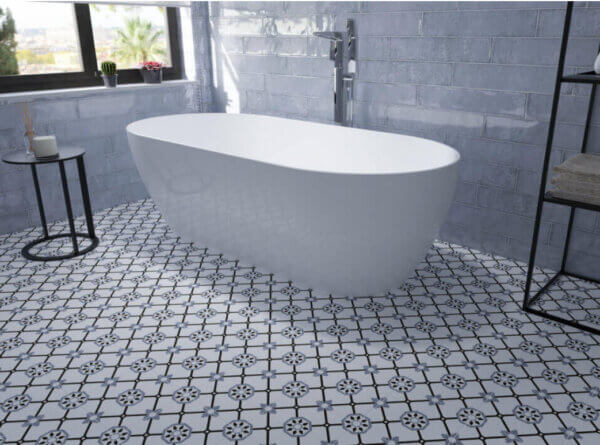 Alba 22 Azul 22.5×22.5 cm , vintage tile, ceramic glazed porcelain, thickness 9 mm , PEI 4 , R10 , may be used as floor and as wall tile.