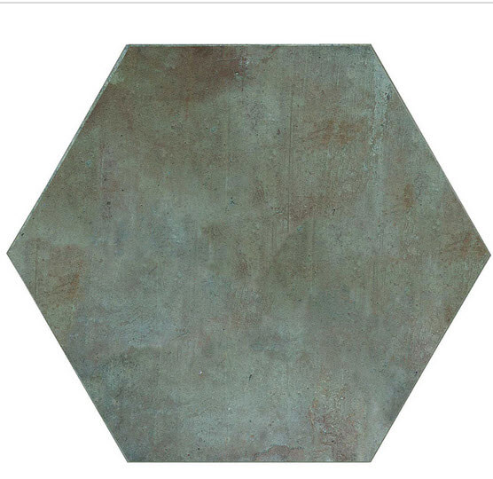 Retro tiles from Zyx . The hexagon format (32 x 36.8), for its part, maximises the fresh botanical concept and particularly enriches the current character of the collection with this geometric shape.
