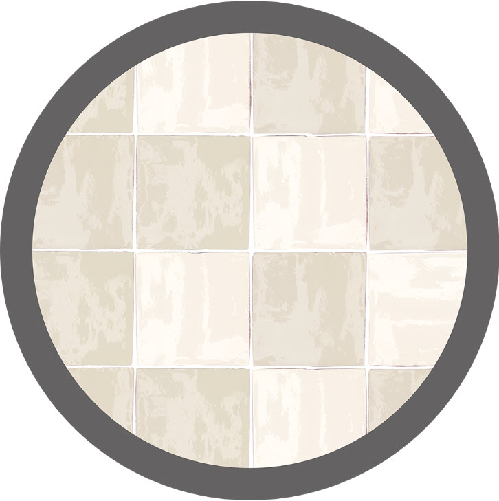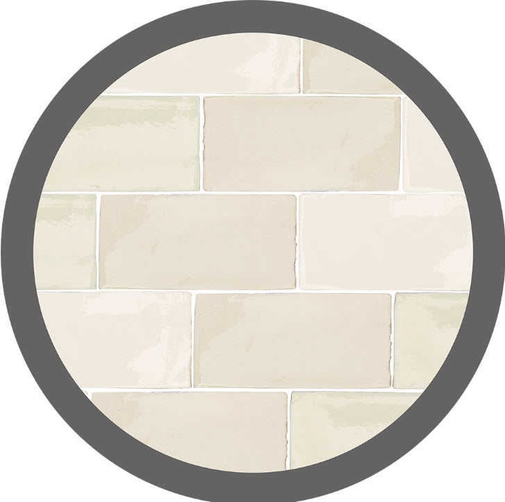 Antic Cream Mix , in sizes 13×13 cm and 7.5×15 cm, enamelled ceramic tiles, wall tile, uneven edges, colour mix cream, on red shard, shiny cracked and undulating surface, thickness 9 mm, mixture of colours and models, artisanal style, recommended joint of 3 mm.