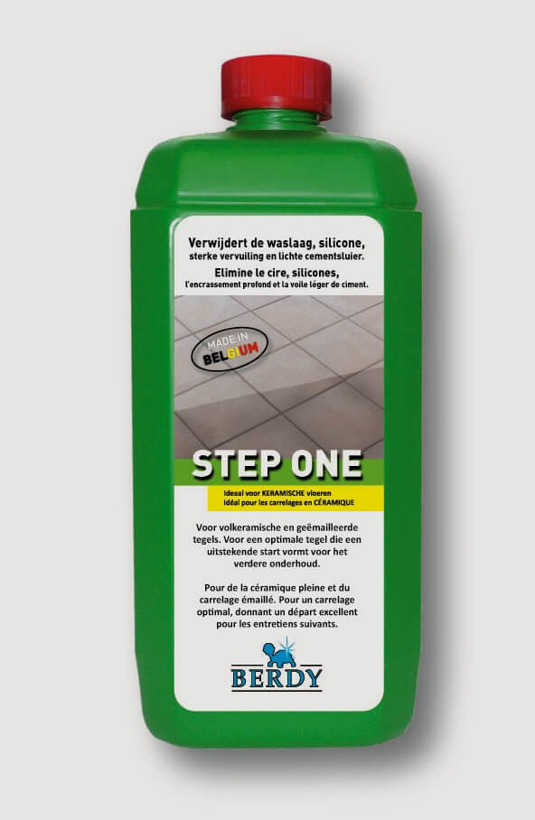 Berdy Step One elimine les silicones, la peinture, les résidus de colle, les traces d’alu, la cire et les taches séchées résistantes.