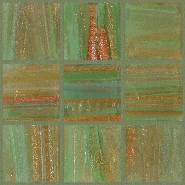 Brillante 258 , mozaïek in chip formaat 2×2 cm of 1×1 cm op net van 31.6×31.6 cm , dikte van de chip 4 mm . Ondoorzichtig glas , textuur geweven met vlam en afgeschuind.