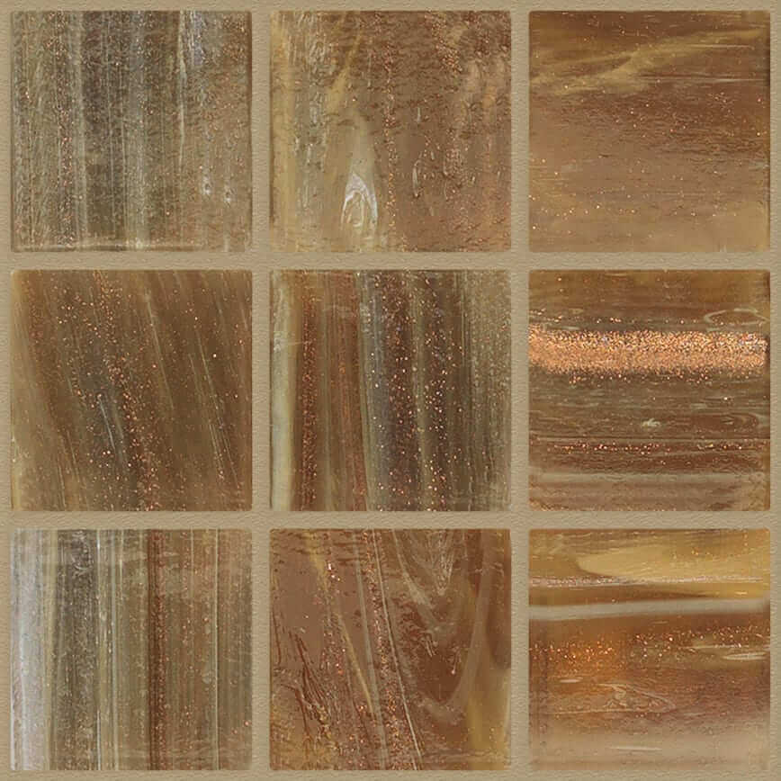 Brillante 282 , mozaïek in chip formaat 2×2 cm of 1×1 cm op net van 31.6×31.6 cm , dikte van de chip 4 mm . Ondoorzichtig glas , textuur geweven met vlam en afgeschuind.