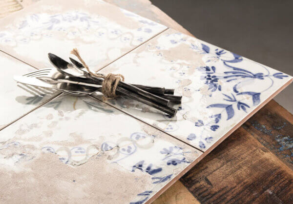 An undisguised tribute to traditional tile-making in tile models as realistic as the traditional vintage ones whose beauty is intensified with the passage of time. FS Heritage are tiles with all the charm of their bygone counterparts. Decorative brushstrokes stand out on a surface marked by the passage of time, demonstrating that careful craftsmanship is not just a thing of the past. These artisans are still here today, conjuring up memories of past golden ages. Thanks to Layer Tech–new digital printing technology by layers–, the contrast can be recreated between a vintage tile pattern and the marks of the passage of time on the clay surface, conjuring up memories of bygone times. On this occasion, these floor tiles come in a 45×45 format, with faux joints to give the impression of smaller 22.5×22.5 tiles once laid.