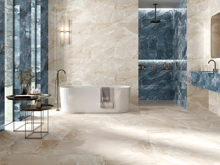Muse Ivory 29.5×59.5 cm , ivoor gekleurde gemarbreerde wandtegel , blinkend, gerectificeerd , variatie V3 en G3 , dikte 9.5 mm.