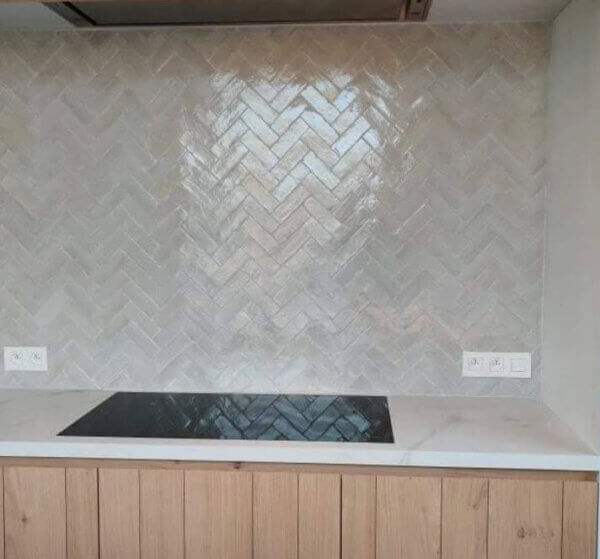 Bejmat MZR 1516 , size 15x5x1.5 cm , glazed terra cotta zellige, colour broken white.