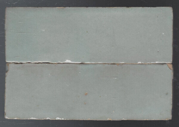 Bejmat MZR 1521 , formaat 15x5x1.5 cm , geglazuurde terra cotta zellige, vuil lichtblauw- mint green.