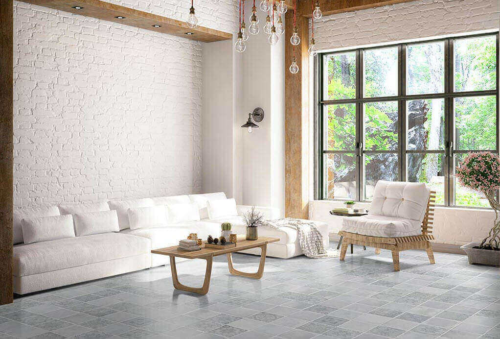 Stone Decor, tile with silk touch, with decors printed on the tile , light grey base colour variable , format 20x20x0.8 cm, finishing mate.