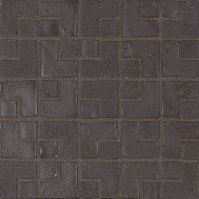 Sumi-e Lambda λ and Delta Δ are variations of the same concept, a design born from the breakdown of a square to create new geometrical structures. By cutting out a sub-module on the inside of a classic mosaic tile, small shapes were created; these were triangular for Delta and square for Lambda. The design changes, depending on how the elements are positioned, giving rise the random and organic qualities that lighten the