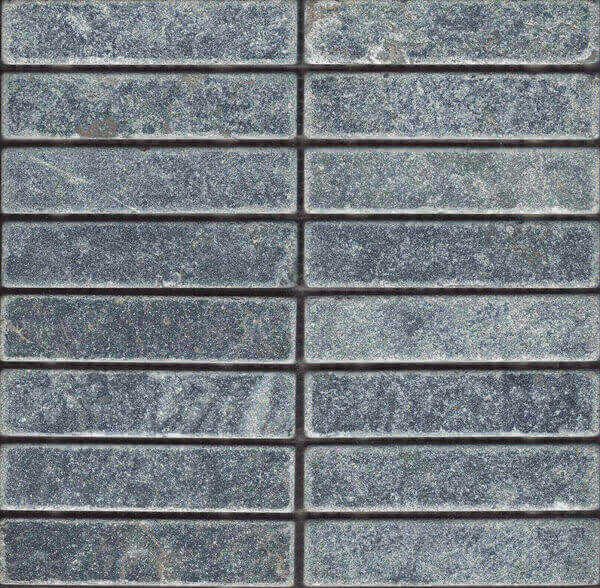 Turkish Bluestone Tumbled , turkish limestone as mosaics, format 2.3×9.8 cm, thickness 1 cm, on net of 30.5×30.5 cm, finishing honed and tumbled .