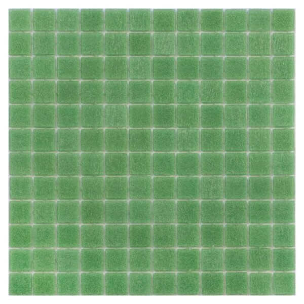 Turvo , glass mosaic , colour green , chip format 25x25x4 mm on silicone net of 300×300 mm.