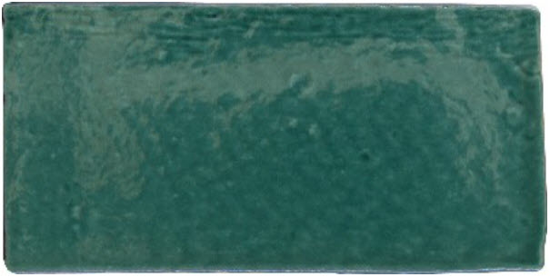 Verde , size 7.5×15 cm , enamelled ceramic tiles, wall tile, uneven edges, colour green, on red sharf, shiny undulating surface, thickness 9 mm, mixture of colours and models, artisanal style, recommended joint of 3 mm.