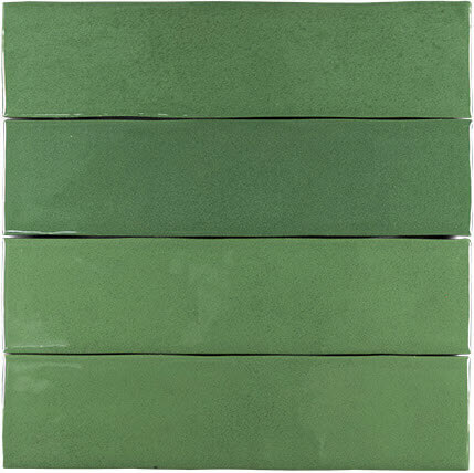 Verde Botella Mix , formaat 10×10 cm en 5×20 cm , geëmailleerde keramische zellige , wandtegel , kleur glasgroen , op rode scherf , ongelijke kanten , gesatineerd oppervlak , dikte 10 mm , mengeling van kleuren , aanbevolen voeg van 1 mm .